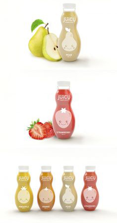 ? ? 另外這款 飲料瓶設(shè)計(jì) 中,采用了葫蘆形的瓶型,搭配卡通化的水果形象,整體風(fēng)格非常可愛(ài)。