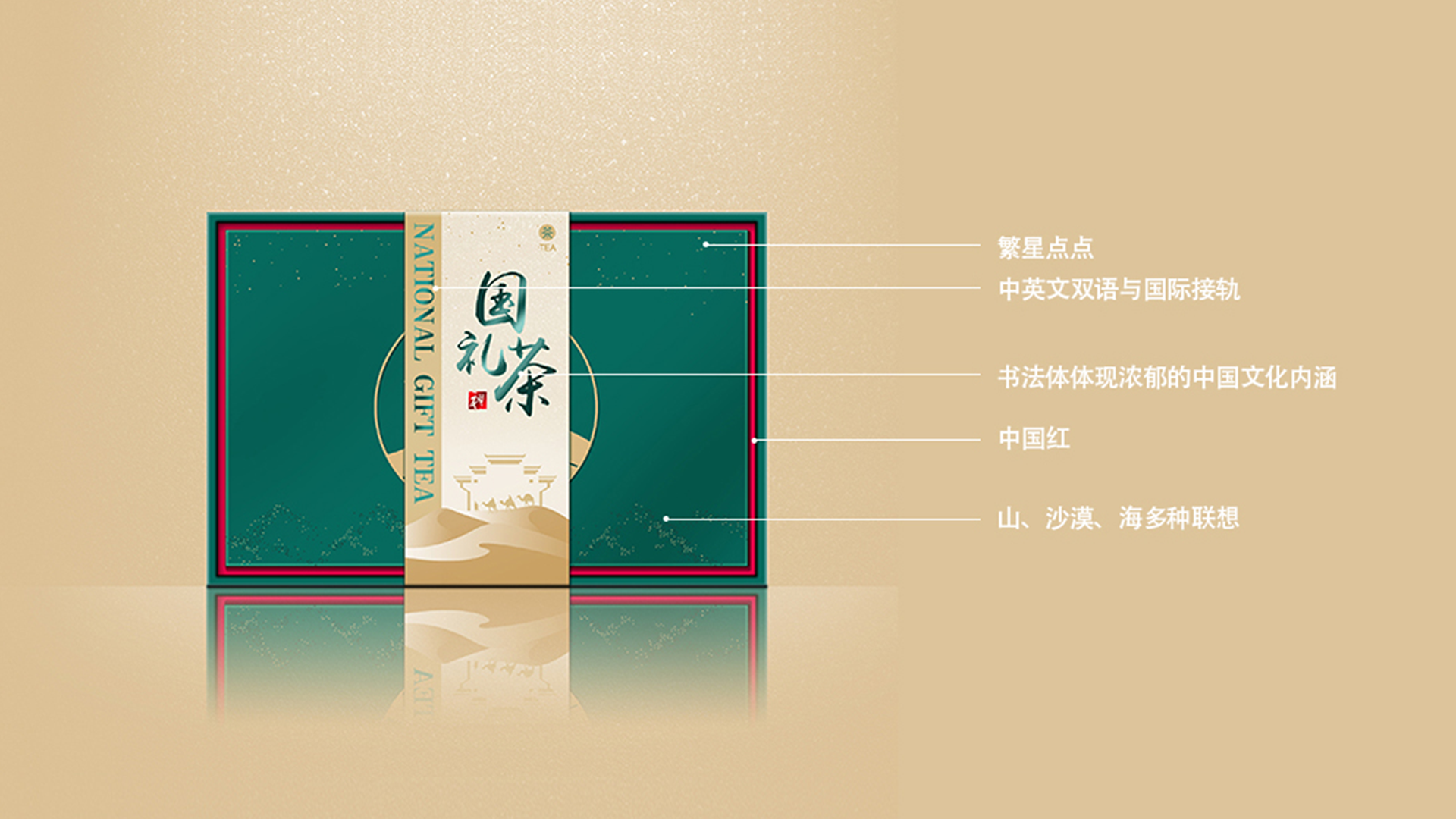 國(guó)禮茶:中國(guó)傳統(tǒng)吉祥元素等,顏色:中國(guó)紅、茶葉綠