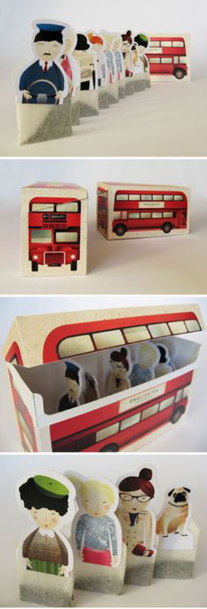 5. 看一眼就被萌到的茶葉盒,長方體的盒型印上巴士的圖案,就真的變成了一輛巴士,打開后,里面有卡通的司機和乘客,還有一條丑萌丑萌的小狗,如此可愛的卡通茶包,你舍得喝嗎?