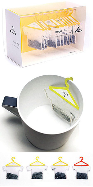 3. 衣柜造型的茶葉盒,衣服形狀的茶葉包被掛在紙質的衣架上,整整齊齊的排列在一起,既方便又有創意。
