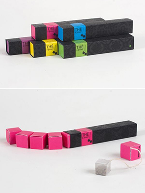 2. 長得很像一條糖果的茶葉盒,雖然表面看上去很簡單,但這個小小的茶葉盒內部和構造卻大有乾坤。兩端不封閉的外殼,可以從一端將內部的正方體小茶葉盒從另一端推出來,方便消費者取出,而小茶葉盒里面裝著的就是茶包,拿出茶包就可以直接放到杯子里沖泡了,既節省了空間,又十分的便捷。