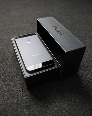 7. 經典的 iphone5 包裝盒,黑色卡紙加上部分 UV 的文字,與手機融為一體。